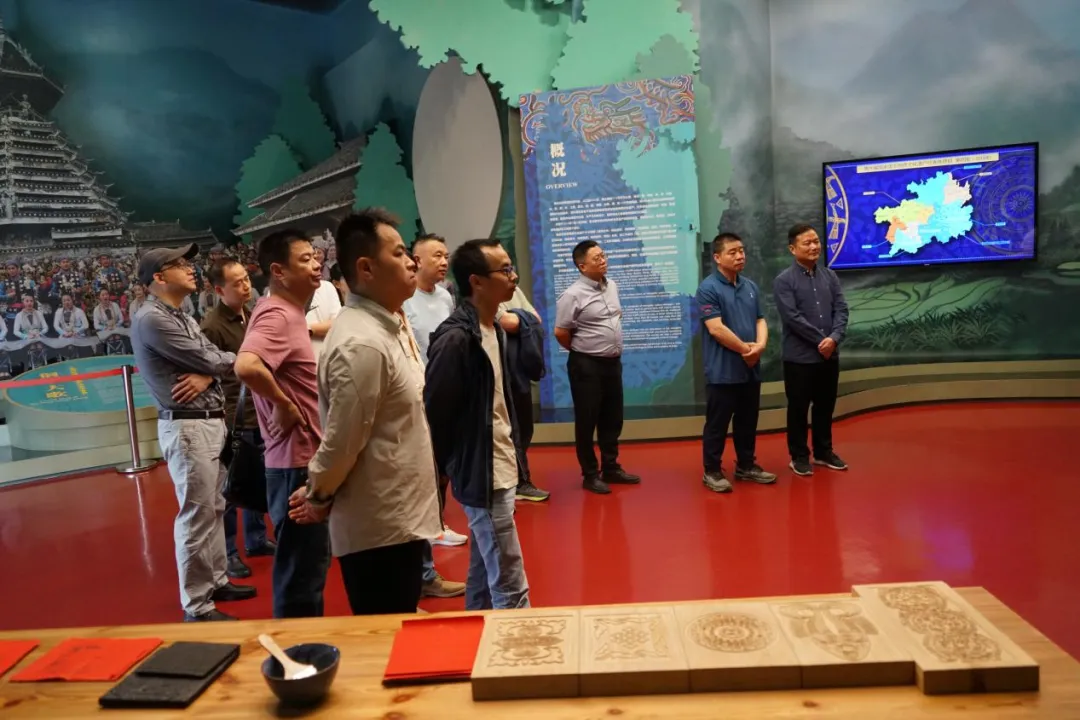 美术家一行先后参观了省非遗馆展示厅及非遗文创集市。在展示厅,通过讲解员解说,加上实物、实景模型、图片图表、音频视频多媒体、查询系统等多种现代科技手段相结合,多层次、全方位,丰富而立体地展现贵州非物质文化遗产的资源现状和保护成果,让美术家一行直观地感受到贵州丰富多彩的非遗资源。