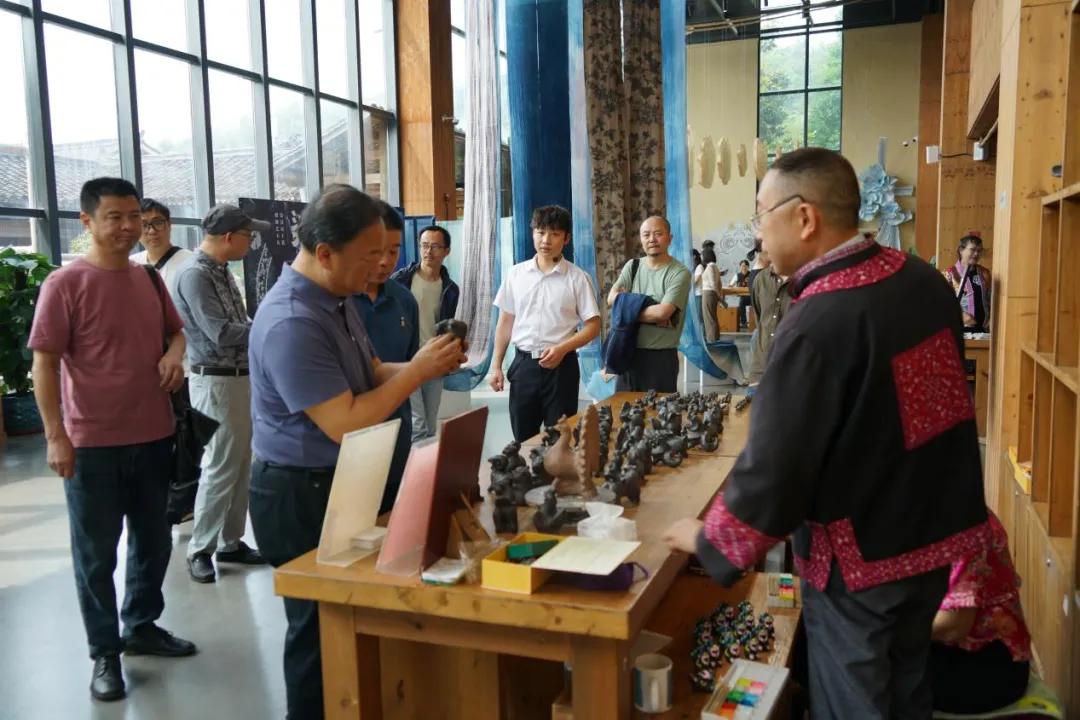 在非遗文创集市,美术家一行对非遗文创作品及传承人精湛的技艺连连称赞。同时,与驻馆非遗传承人进行亲切交流。表示,这些文创产品融入了多种非遗元素,在传承传统技艺基础上不但注重打造产品的实用性与生活性,而且还在深入挖掘非遗内涵,在促进文旅融合发展的同时将其历史、文化、科学及艺术等特征展现出来,是艺术促非遗,非遗展艺术的融合表现。