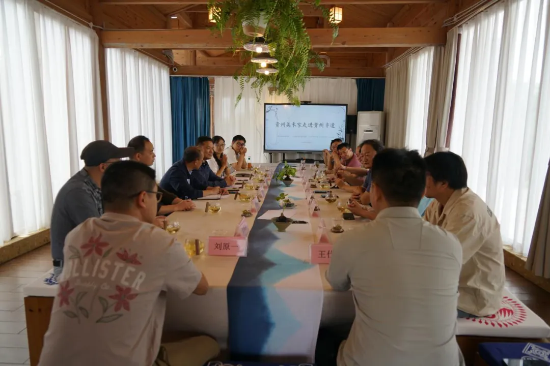 参观结束后,艺术家一行与省非遗中心进行座谈交流。座谈会上,龙佑铭从贵州省非遗保护传承实践、新时代贵州非遗传承与传播等多角度、系统化地介绍贵州省非遗保护传承的整体情况。同时,美术家们就艺术与非遗融合、艺术助推非遗、非遗与美术衔接、非遗传承进高校等主题与省非遗中心展开交流。表示,今后要加强交流,加强合作,共同举办美术非遗作品展、走进贵州非遗写生、基地建设,非遗文创产品研发设计、非遗艺术融合等活动。共同进一步挖掘中华优秀传统文化,推进非遗与艺术融合,增加非遗与艺术融合的可见度与可及性,共同把非遗保护好、利用好和发展好,推动新时代贵州非遗系统性保护和高质量发展。