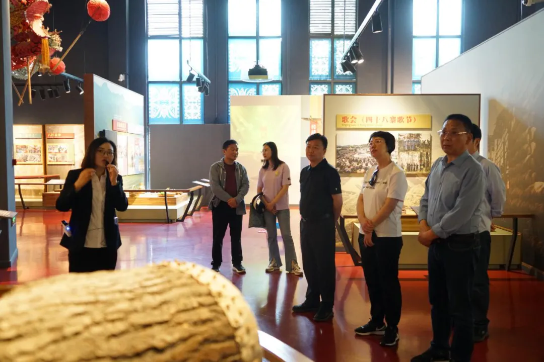 4月14日,常州国家高新区管委会副主任邹晓风(挂职),常州市新北区人民政府副区长陈建生,常州国家高新区(新北区)教育局局长王华国,常州市文化广电和旅游局产业发展处处长陈玉新,恐龙园文旅集团股份有限公司党委委员、联席总裁唐华亮等一行到贵州省非物质文化遗产博览馆调研,贵州省非物质文化遗产保护中心主任龙佑铭陪同。