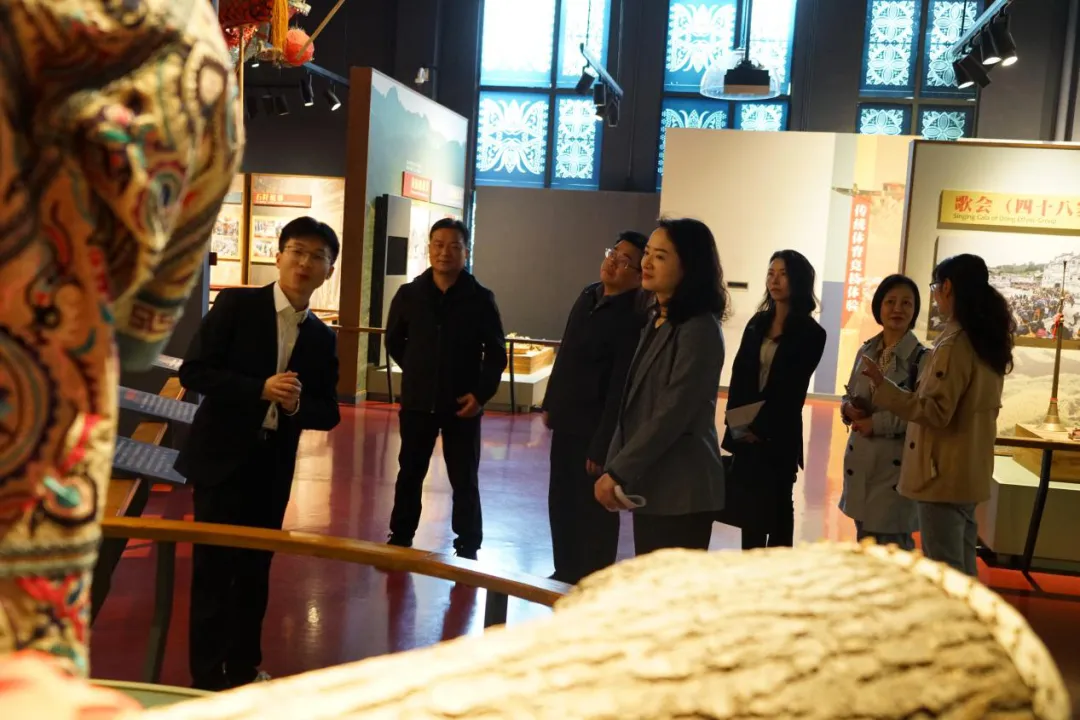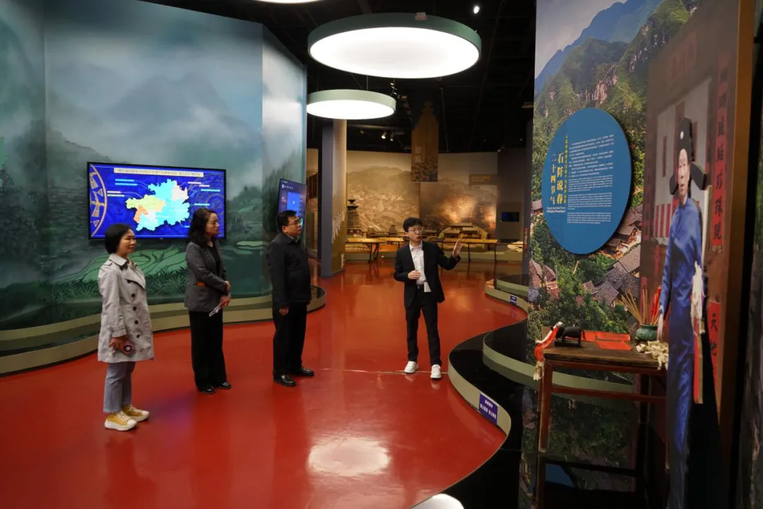 李泽君一行先后参观了省非遗馆展示厅及非遗文创集市。在展示厅,通过讲解员解说及音频、视频、实物模型等表现形式立体具象地将贵州非遗的存续状况展现出来,让李泽君一行直观地感受到贵州丰厚的非遗资源。