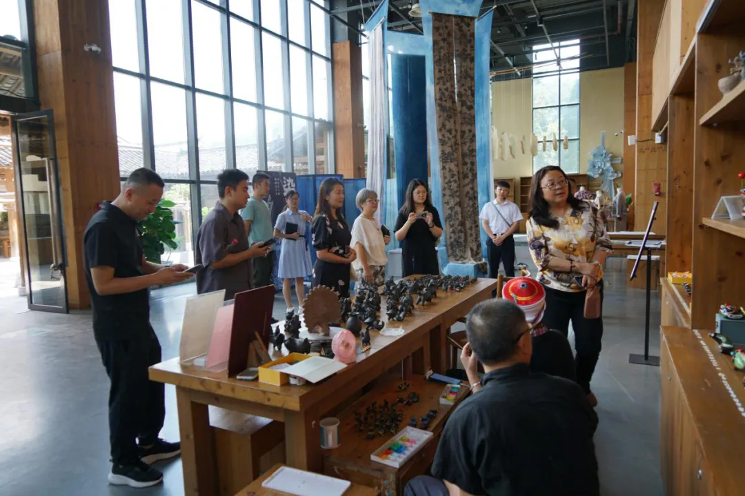 张玲一行先后参观了展示厅及非遗文创集市。在展示厅,通过讲解员的解说,加上结合实物、实景模型、图片图表、音视频多媒体、查询系统等多种技术手段,多层次、全方位、立体化地展现了贵州非物质文化遗产的资源现状和保护成果,让张玲一行直观地感受到贵州丰富多彩的非遗魅力。