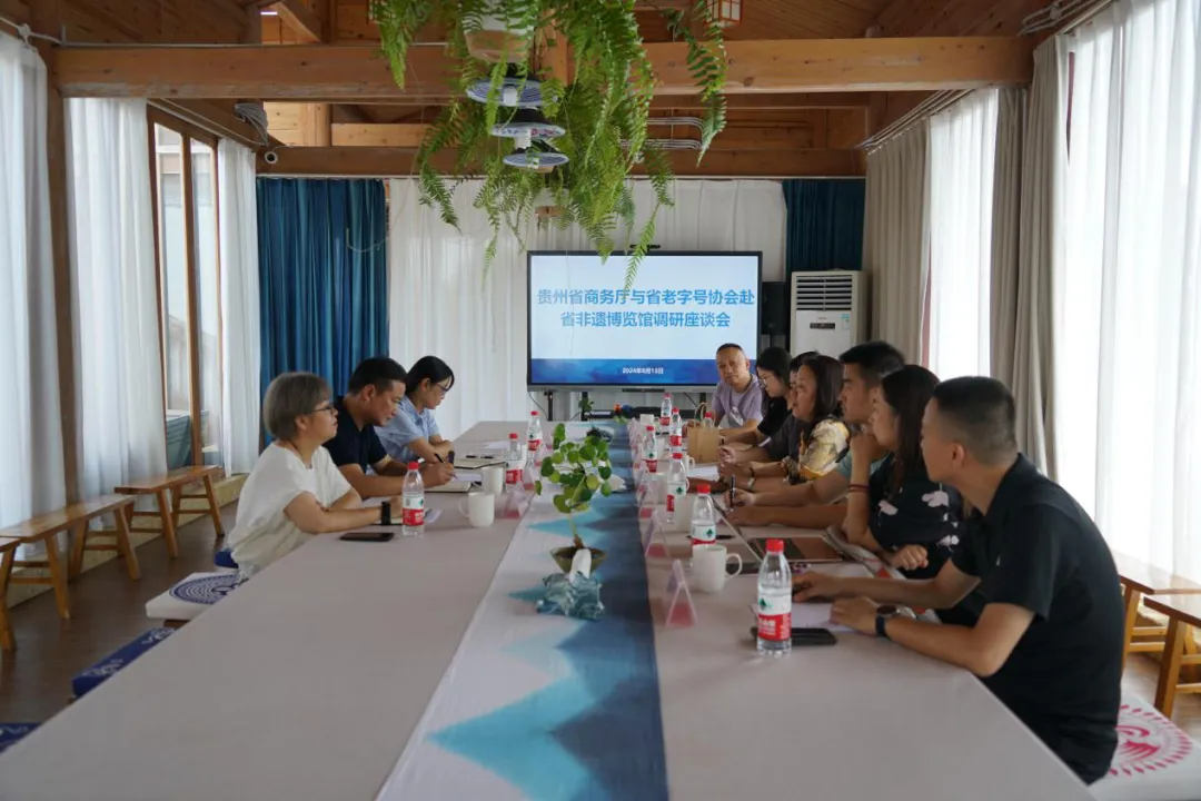参观结束后,张玲一行与省非遗中心进行座谈交流。座谈会上,省商务厅与省老字号协会先后介绍了调研背景组及相关工作情况,省非遗中心也介绍了贵州非遗项目的保护和传承情况。同时,与会人积极发言,结合专题,就非遗与老字号品牌的创新发展,非遗与老字号品牌建设的实践和经验,非遗文创与老字号品牌的市场潜力和推广策略进行了深入交流与探讨。