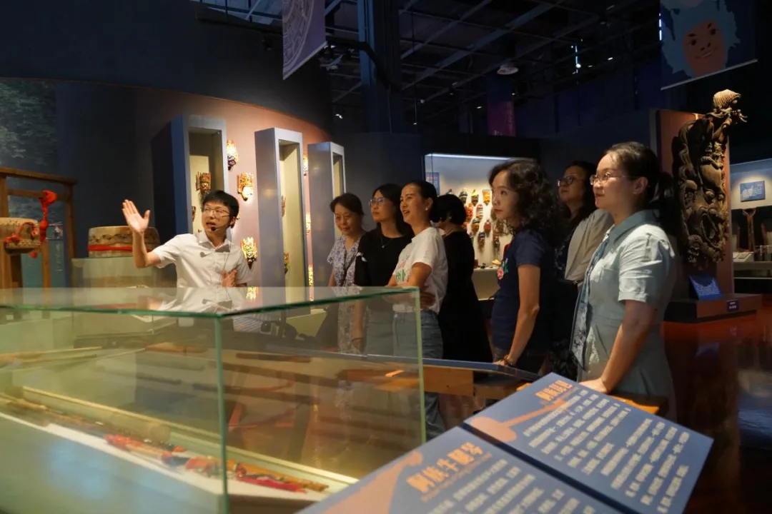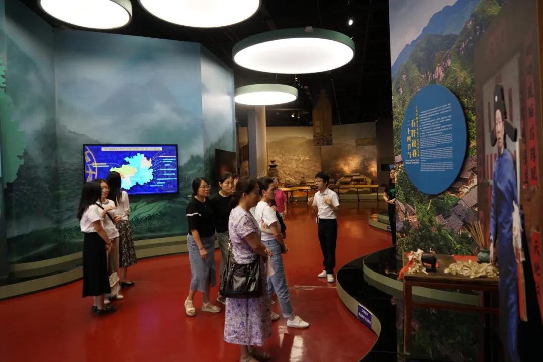 省商务厅机关工会女职工委员会全体成员先后参观了省非遗馆展示厅、传承厅及非遗文创集市。在展示厅,通过讲解员的解说,加上结合实物、实景模型、图片图表、音视频多媒体、查询系统等多种技术手段,全方位地展现了贵州非遗的资源现状和保护成果,让省商务厅机关工会女职工委员会全体成员直观地感受到贵州丰富多彩的非遗魅力。