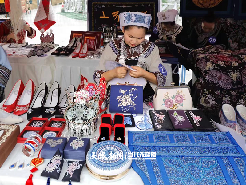 马尾绣,是水族妇女世代传承的以马尾作为重要原材料的一种特殊刺绣技艺。它的制作过程繁琐复杂,成品古色古香,华美精致,结实耐用,在三都传承上千年,有刺绣“活化石”美誉,也是国家级非物质文化遗产之一。