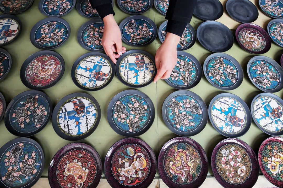 新中国成立后,大方漆器不断发展,漆器花色品种达200多种,形成独树一帜的“贵州风格”,既走俏国内市场又出口欧洲。