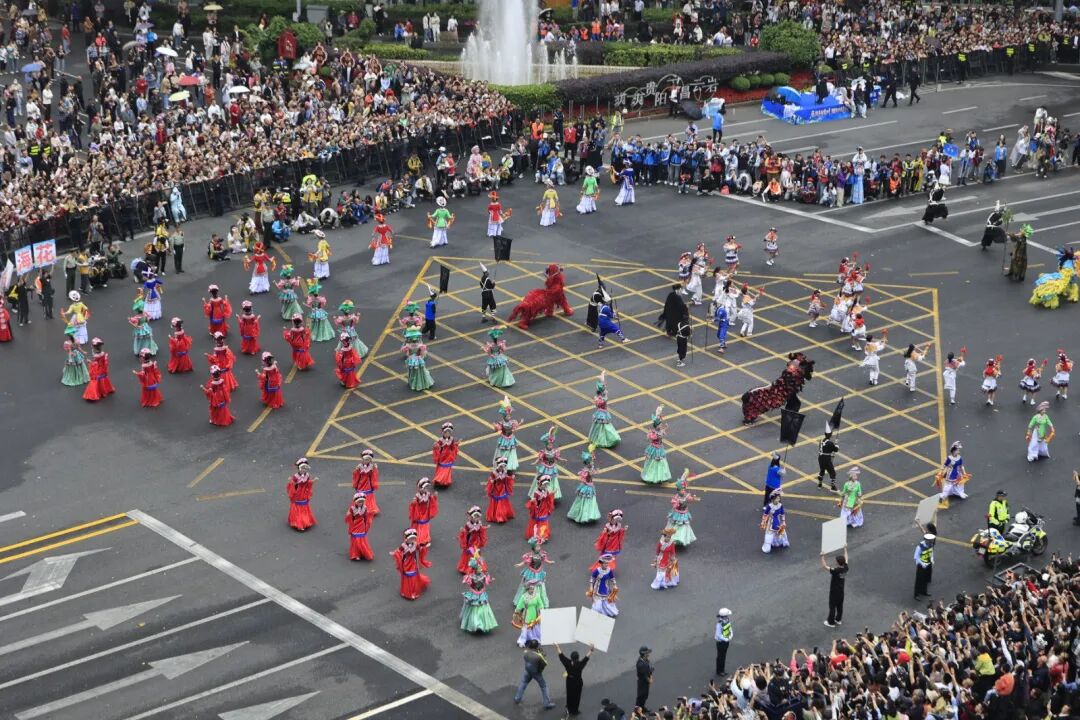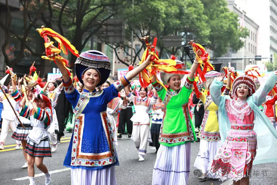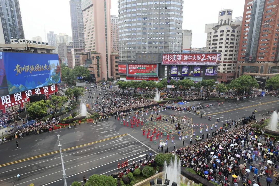 5月18日,2025年5·19中国旅游日·贵州民族团结大巡游在贵阳市精彩上演时,国家级非遗彝族铃铛舞以其粗犷的风格征服广大观众。