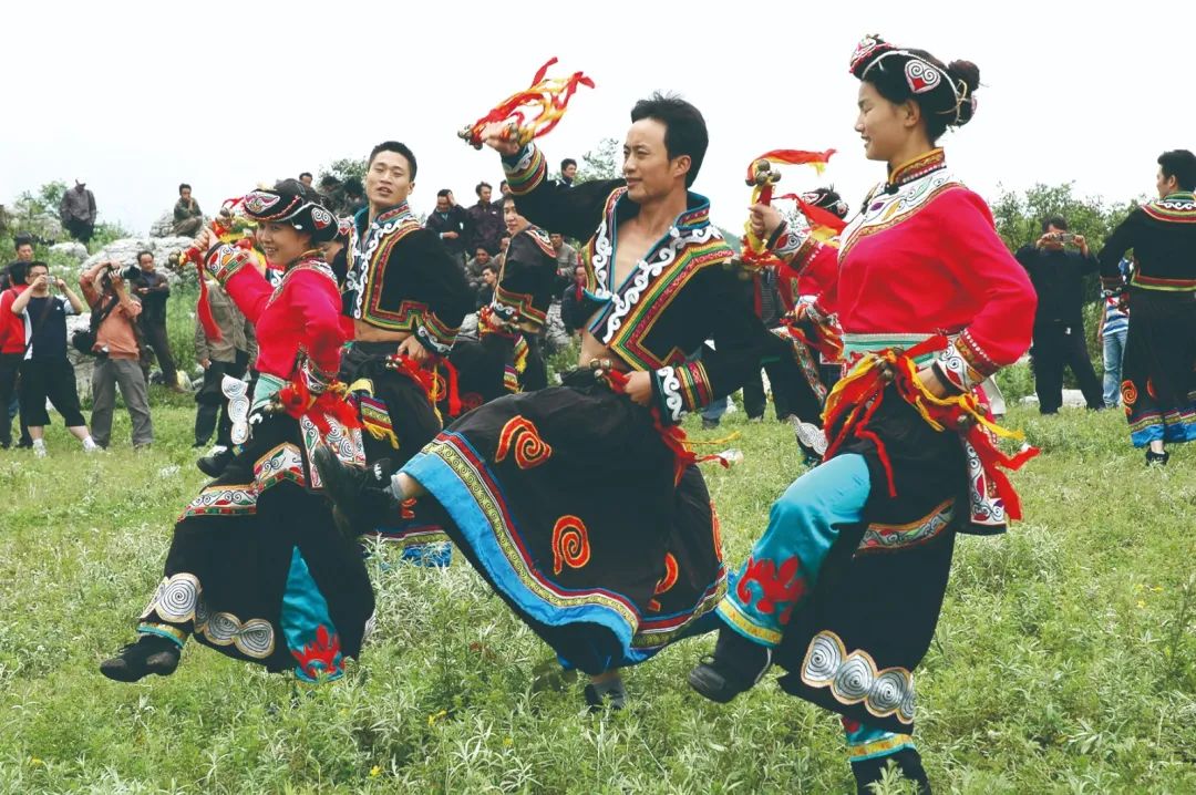 彝族是我国大西南的世居民族,在千百年的历史进程中,能歌善舞的彝族人民创造了辉煌灿烂的文化。铃铛舞是赫章县、威宁自治县境内彝族的传统舞蹈,舞蹈内容贴切,风格朴实,彝语称为“恳合呗”。据《西南彝志 • 论歌舞的起源》载:“斋场四面八方……巧舞者手执小铃而舞”,后沿袭此俗。