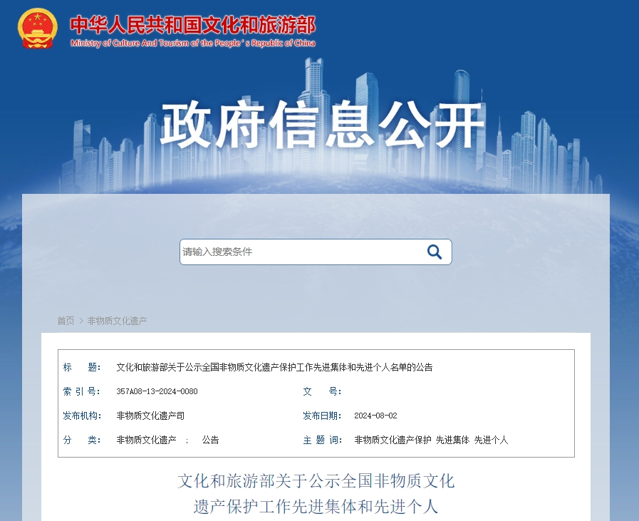 按照《文化和旅游部关于评选表彰全国非物质文化遗产保护工作先进集体和先进个人的通知》(文旅非遗发〔2023〕123号)要求,经组织推荐、评选,共评选出全国非物质文化遗产保护工作先进集体100个,全国非物质文化遗产保护工作先进个人200人。现将名单予以公示,公示期自即日起5个工作日。