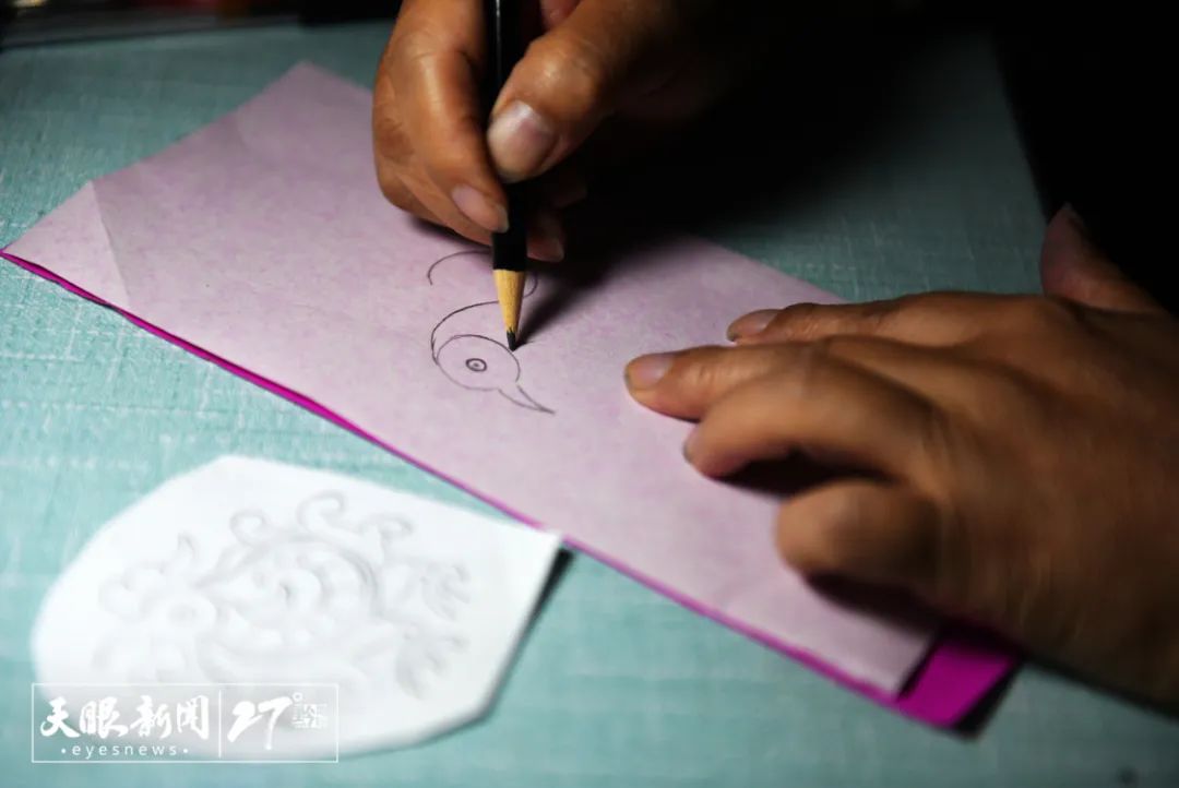 剪纸不但要好看,还得考虑绣娘能不能根据剪纸底样绣出来、绣出来的成品效果如何。