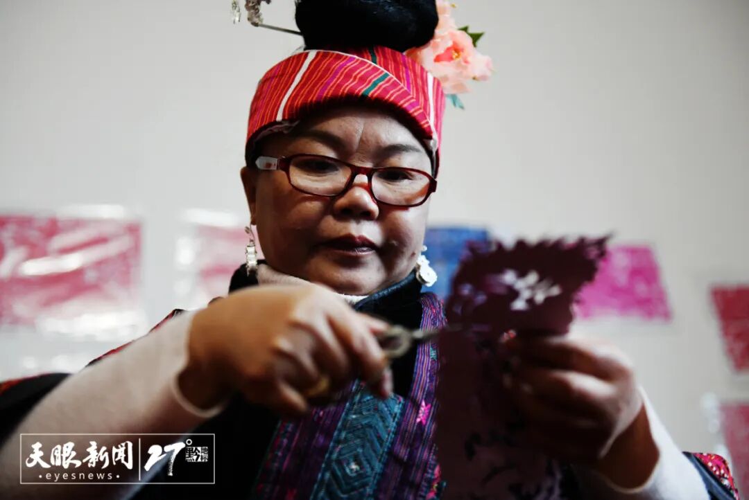 苗族女性从小就要学会绣花,一般都能自画自剪,有些画得不太好或不会剪的人,就向别人讨要,能成为“剪纸师”的苗族妇女少之又少。黔东南州剑河县的姜文英,更是为数不多的国家级非物质文化遗产项目剪纸(苗族剪纸)代表性传承人。