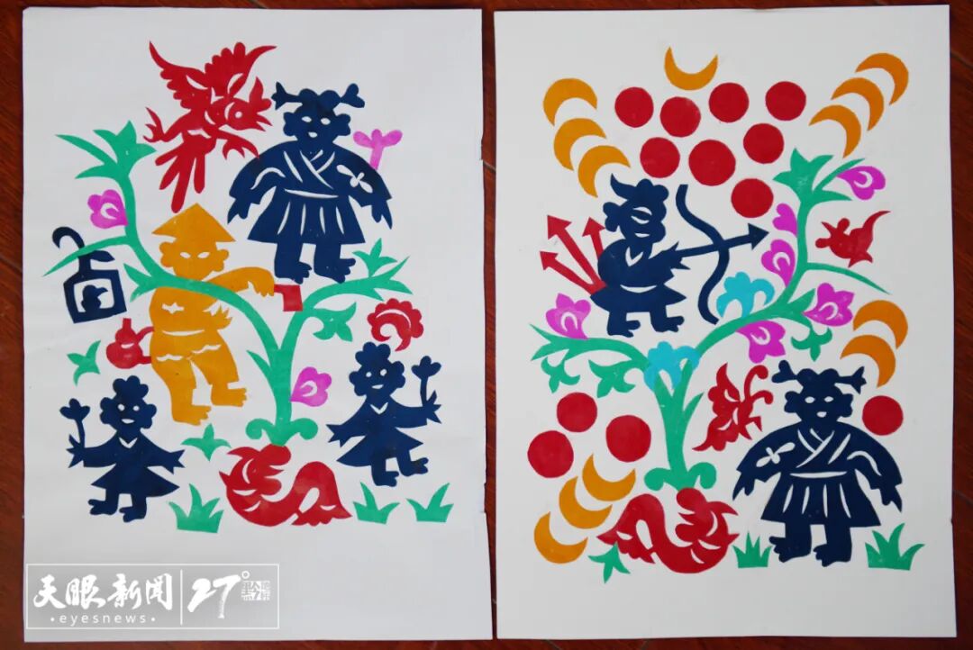传承过程中,剪纸几乎没有样品,苗族剪纸师从长辈所讲的故事中获得灵感,根据故事创作。于是,苗族同胞对于剪纸档次的高低评价,不仅仅在于技巧和美感,还在于里面的故事布局和文化含量。