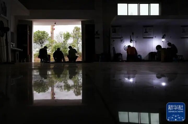 4月30日,在贵州省岑巩县思州石砚非遗传承基地,项目传承人周永平在检查思州石砚质量。新华社记者 杨文斌 摄