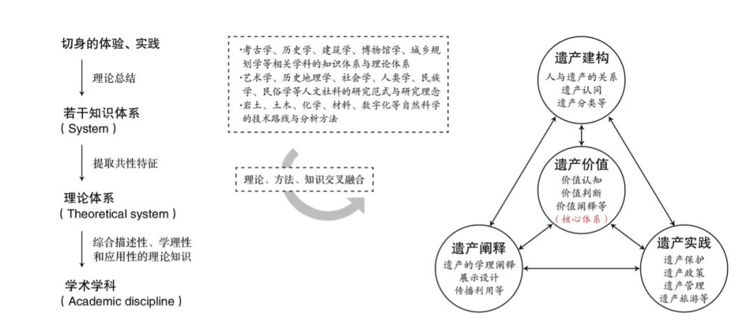 从社会逻辑上看,“文化遗产学”的学术建构反映的是一种新的历史哲学观与社会发展观,是回应国家文化战略、遗产保护实践及全球文明对话的迫切要求。当前我国的遗产保护实践已形成规模化、系统化的格局,依托传统考古学、建筑学等学科的人才培养,能够解决部分专业领域的实践问题,但难以满足文化遗产保护对跨学科整合、活态传承及创新性管理利用的需求。从国际国内业已开设的文化遗产课程、设立的文化遗产专业以及学院的实践可以窥见,文化遗产学的学科建设已成为一种发展趋势。人们需要将散见于遗产实践与研究活动中的思想理论、技术方法等,借助体系化的学科建设,转变为社会经济与文化的发展动力,完善从知识生产到人才培养的社会工程。