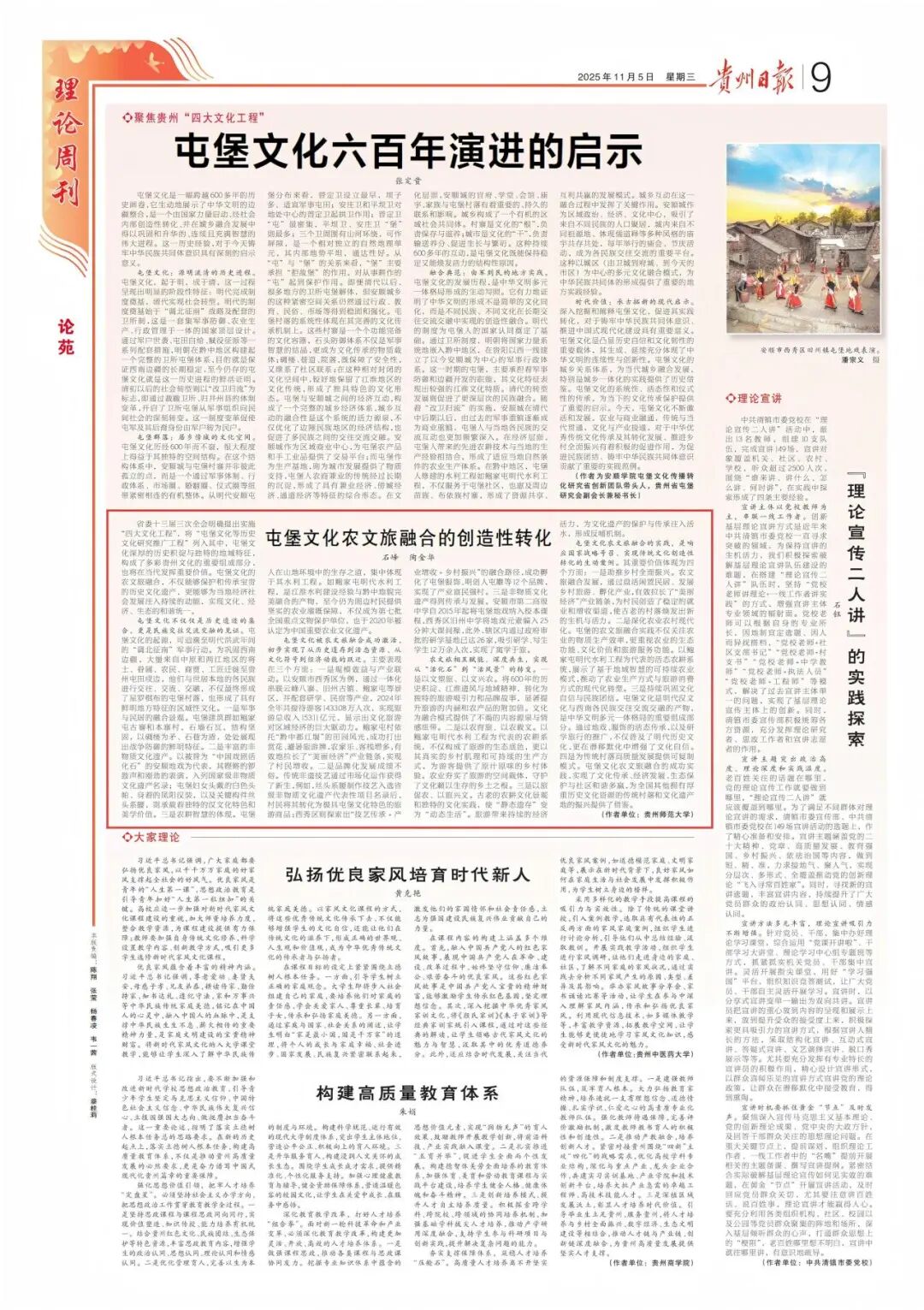 省委十三届三次全会明确提出实施“四大文化工程”,将“屯堡文化等历史文化研究推广工程”列入其中,屯堡文化深厚的历史积淀与独特的地域特征,构成了多彩贵州文化的重要组成部分,也将在当代发挥重要价值。屯堡文化的农文旅融合,不仅能够保护和传承宝贵的历史文化遗产,更能够为当地经济社会发展注入持续的动能,实现文化、经济、生态的和谐统一。