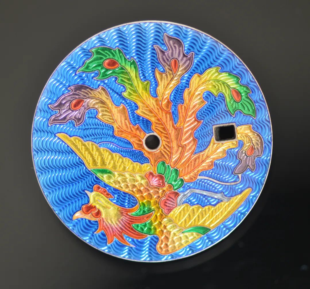 熊松涛决定开发珐琅表盘,是因为看到国外杂志上对瑞士品牌表的介绍,其中提到,当时全世界掌握表盘珐琅工艺的技师不超过10个。于是他反问,自家厂里有几百人能制作珐琅器皿,怎么全世界就只有不到10人能做珐琅表盘呢?带着这样的问题,在“归队”一年多后,熊松涛着手带领技术团队研制珐琅表盘。但是,珐琅表盘的制作毕竟不同于传统的珐琅器物,欲呈现小而精致的效果需要对传统工艺进行大量突破性改进。熊松涛的创新,既包括对工艺的改进,也包括对传统珐琅器(景泰蓝)装饰方式的改变(图3、图4)。