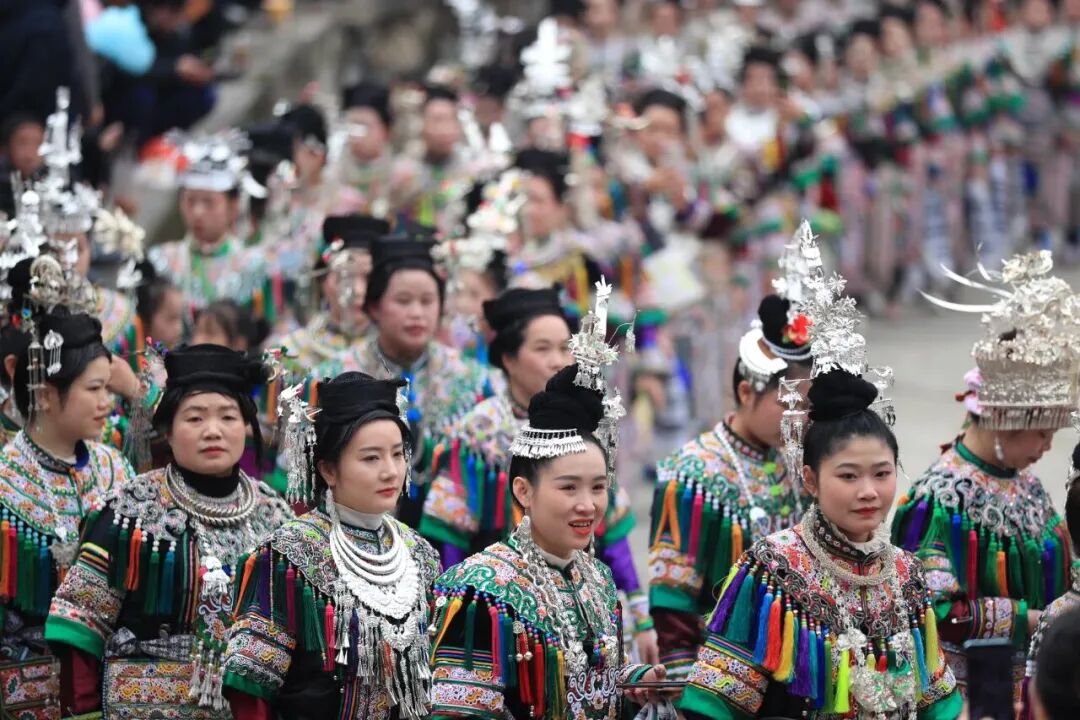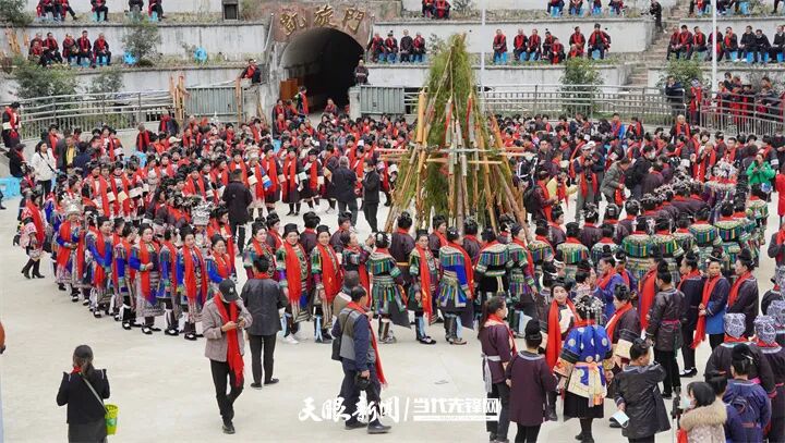 贵州省黔东南苗族侗族自治州从江县西山镇顶洞村举行千人踩歌堂(图片来源:人民图片网)