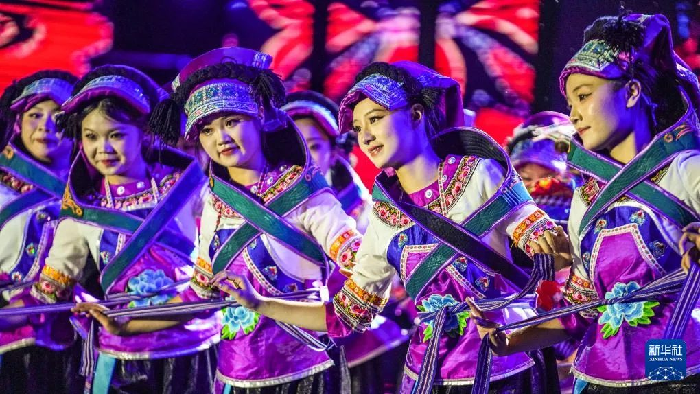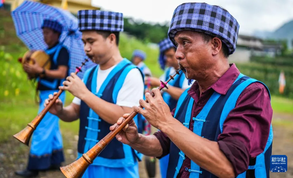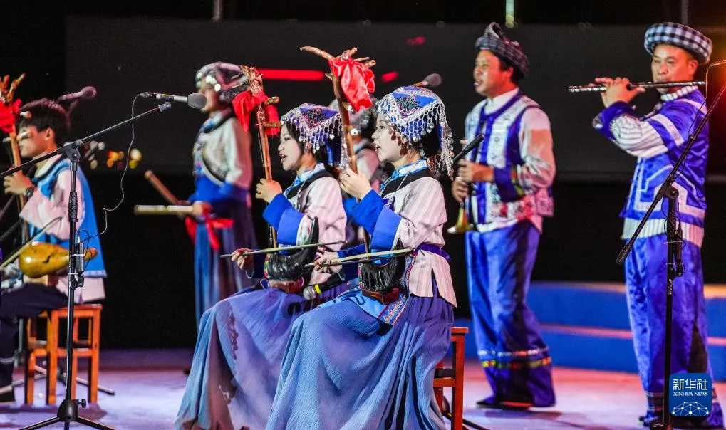 黔西南布依族苗族自治州的布依族群众在表演《八音坐唱》(6月29日摄)。新华社记者 陶亮 摄