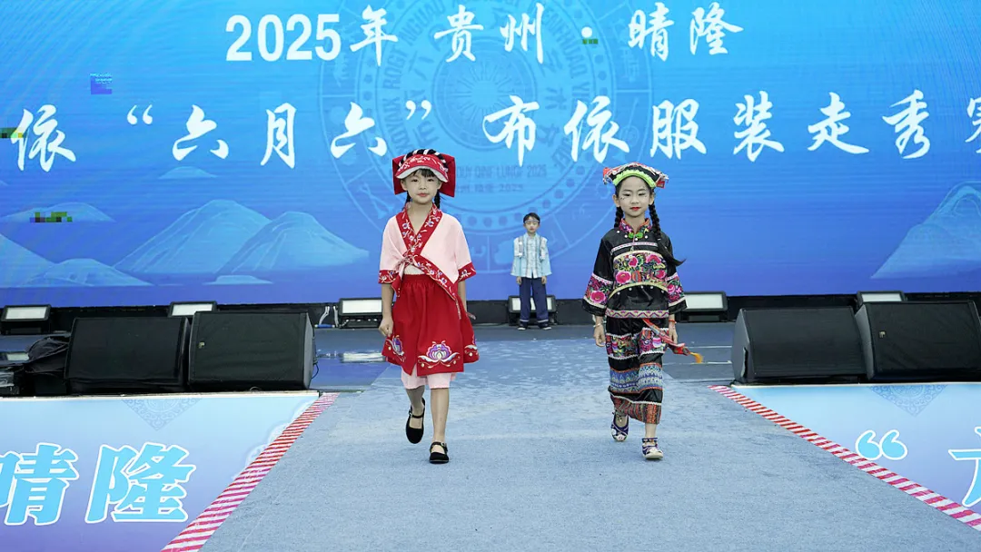 六月的晴隆,成为民族文化的展示厅。沙子镇村歌大舞台上,一场极具民族特色的服装走秀正在上演。舞台上年长妇女身着传统蜡染刺绣的阔腿开衫,庄重古朴;妙龄少女则穿着现代审美改良的扎染短裙,灵动时尚。