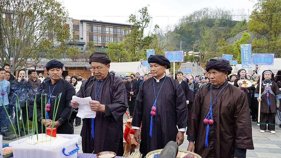3月30日,上千名布依族同胞身着绚丽多彩的传统盛装,通过巡游、祭祀、丢糠包、打手毽以及布依文艺晚会等丰富活动,欢庆这一古老节日。