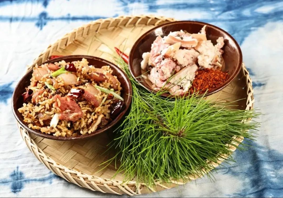 荔波酸肉历史悠久,源远流长,享有盛名。在荔波,逢年过节、喜酒贺寿、亲朋好友相聚,餐桌上必备酸肉。荤食油腻之时夹一块放进嘴中,细细嚼之,顿感清酸,使人食欲大振。