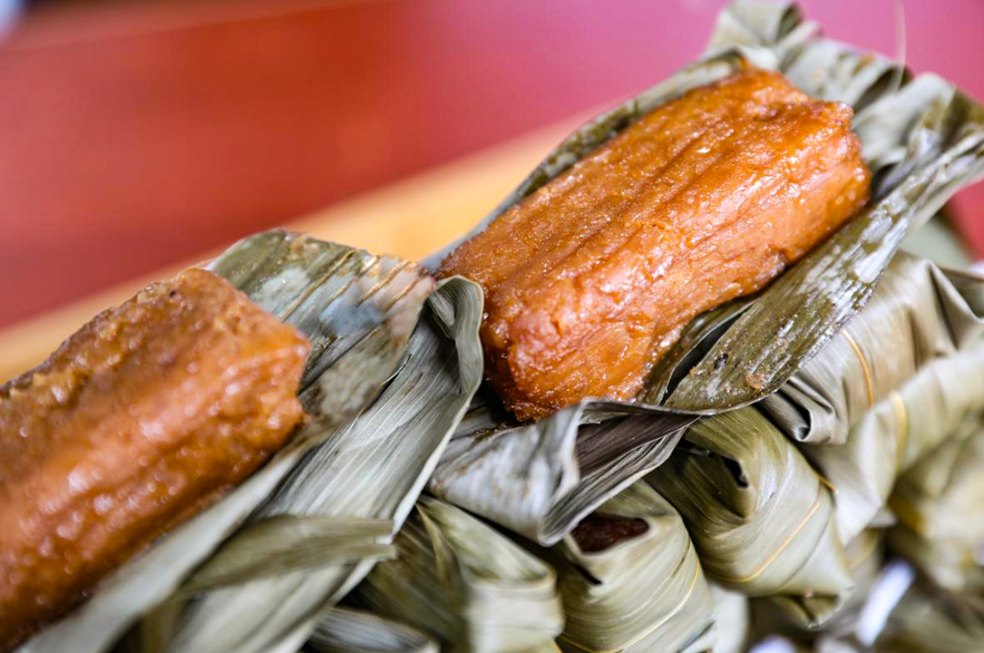 黄粑又名黄糕粑,兼具“糕”“粑”的特点,富有传统风味,是贵州人走亲访友、家人团聚、过年过节的必备标志性食品,可蒸、可炸、可烤,做法多样,其色泽金黄、香气浓郁、味甜软糯。