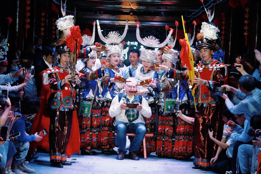 2025年中国国际时装周舞台上,凯里市凯棠镇71岁的顾彪身着苗族服饰,脚蹬草鞋,用木犁扛起5岁小孙女,哼着苗歌自信走上T台的场景,迅速蹿红网络,相关话题流量超亿次。寨子里的人都羡慕地说,顾彪从贵州苗寨犁田犁到了北京、犁到了国际舞台。