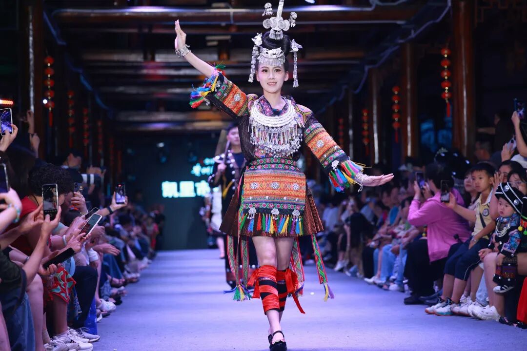 这个颠覆时尚界的原生态大秀的舞台。贵州“村T”这场以贵州村民为主角的“百姓秀场”,其接地气、原生态、有温度的表演形式,不仅收获了当地老百姓的喜爱,也引起了时尚圈的广泛关注。贵州的非遗元素成为了国际时尚界的灵感源泉,与各国文化相互交融发展,频频受邀参加各国际时装周等表演,跃升为贵州又一“世界级文化IP”。完成了从乡土符号到时尚语言的创造性转化,打破了“传统”与“现代”“乡土”与“时尚”的文化壁垒,让沉淀千年的文化,在现代重新焕发新生。