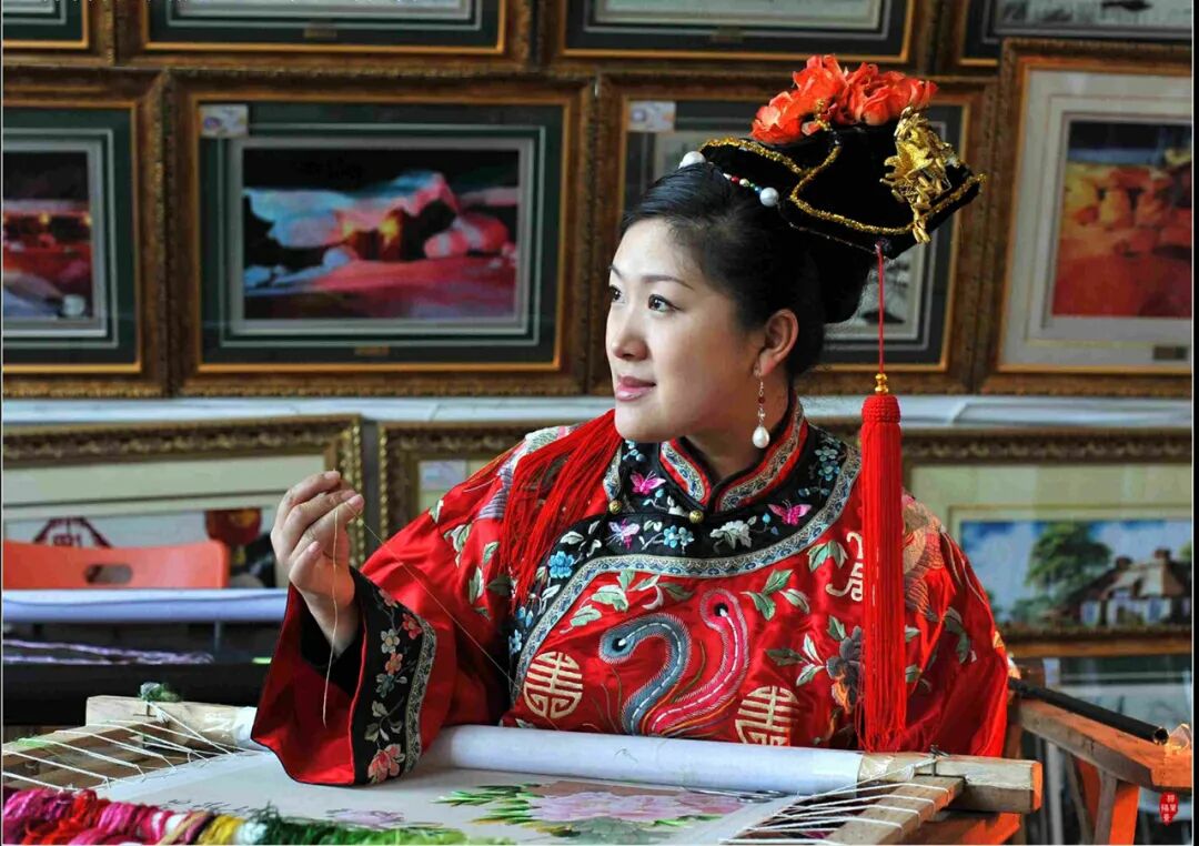国家级非物质文化遗产满族刺绣是根植于黑龙江省牡丹江市满族祖先的传统民间手工刺绣。继承了古代百姓使用的传统针法鸡爪针,现发展为三角针,刺绣出的作品细致精巧、色彩艳丽、景色逼真,既有江南刺绣的柔美又具北方人粗犷豪放,大气磅礴的性格特点,形成了独特的民族工艺。
