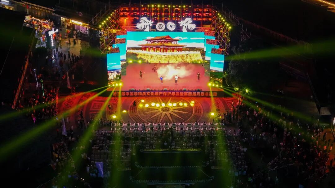 开幕式上,侗族大歌《天籁之声》、川剧变脸《古蜀天边行》、陕北说书《三秦之声》、醒狮、咏春、粤剧《狮武岭南》、民族团结大联欢《多彩和鸣》等由多项国家级非遗代表性项目融合编排的节目先后登场,展现了非遗传承和创新发展的活力。