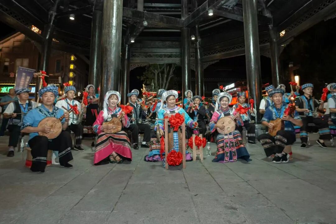 开幕后,非遗盛装展演拉开“五好非遗大集”序幕。本次“五好非遗大集”汇集了来自全国22个省份、自治区及直辖市共205个非遗项目、485位传承人,其中国家级非物质文化遗产代表性项目81项、省级非物质文化遗产代表性项目项目57项、市州级44项、县级23项。由芦笙音乐(苗族芒筒芦笙)、苗族芦笙舞、苗年、苗族蜡染、石桥古法造纸、苗族贾理、苗族古瓢琴舞、苗族服饰等丹寨县内的八项国家级非遗代表性项目组成的8大展演方阵沿着街道徐徐前行,非遗代表性传承人和表演者们身着华丽的传统服饰,手持精美的非遗手工艺品,以街道为T台,热情地向观众游客们展示传承千年的传统文化,彰显非遗魅力。