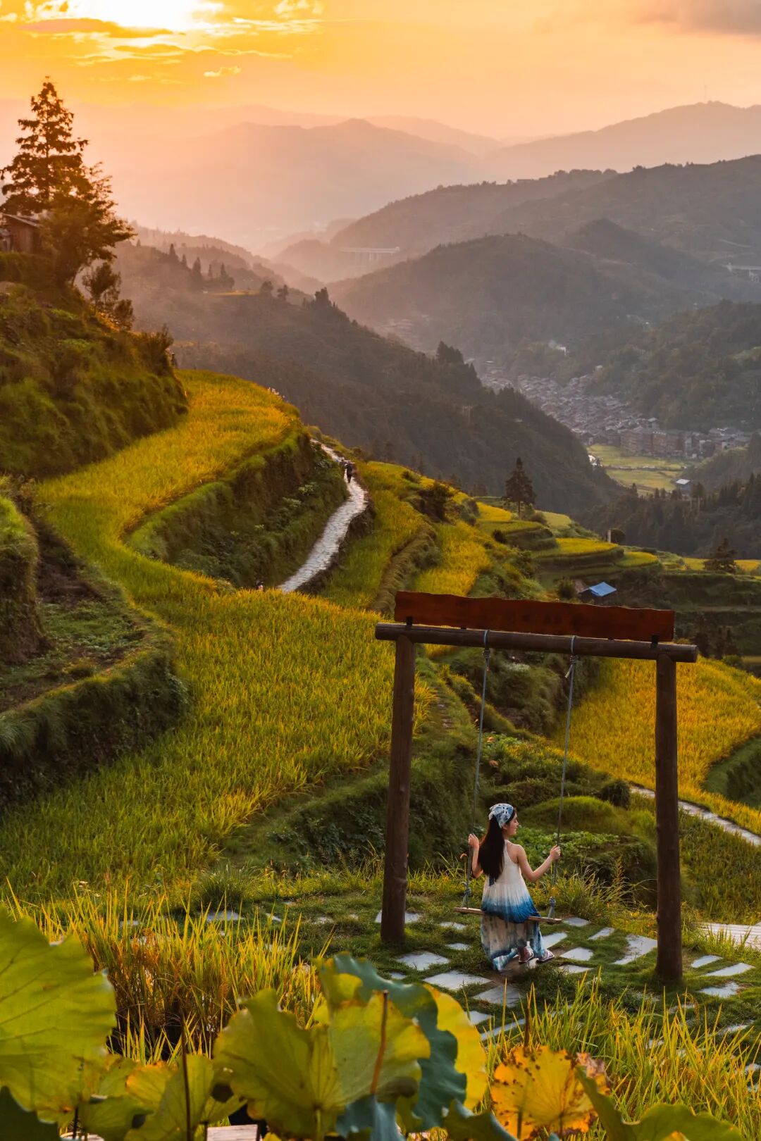 养眼之旅:要问浩浩荡荡到贵州的出游人群,什么是老少咸宜的必备项目,那必然是——出片!黔东南州加榜梯田即将丰收,游人走进秋天的金色迷宫。贵州的秋季,是大自然打翻的调色盘。九月至十月,属于贵州的雨季刚过,山水更加清澈的时节,仿佛将如梦如幻的秋季画卷徐徐展开,见之心旷神怡。六盘水市妥乐村或许是最受“出片”达人青睐的宝地,这里拥有世界最大的银杏群。每年秋季,1200余株古银杏树叶片金黄,落英缤纷,将整个村庄装扮成童话世界。古老的寺庙、小桥、流水与金黄的银杏相映成趣,时间在这里仿佛静止了。任何一个角落按下快门,都是一张能让你称霸朋友圈的大片。妥乐仙境,千年银杏铸造的童话世界,秋天的“出片”天花板!除了乡村,贵州的都市也有自己独属的金色秘境。各色“秋色叶”树种的应用,让城市俯仰之间皆是秋色。贵阳市花溪黄金大道梧桐树片片金黄,倒映在清澈的花溪河水中,形成一条金光大道。在河边散步、骑行、野餐,享受便捷的宁静秋意,老少咸宜,是家庭出游娱乐身心的好去处。毕节市阿西里西韭菜坪的秋天则与众不同,当海拔升至2900米,这里的秋天是连绵的紫色草甸、山脊线悠哉游哉的大风车,韭菜花热烈地盛开,被誉为草原平替的山脊小径吸引人们前去漫步,行走其上,云雾常常萦绕脚边,犹如漫游天空之境。海拔再低一些,贵州的秋山秋林也拒绝四季如一的单调。黔北赤水市的赤水丹霞在秋天褪去了夏日的浓绿,换上红、黄、绿的五彩宝衣,像节节高升的宝塔,又像现实版的“千与千寻”世界。而黔东北铜仁市梵净山的秋,气势磅礴,森林用最浓烈的色彩给起伏的群山织起渐变的地毯,落叶铺成金色的小路,像是穿越进入童话世界。在北方随着秋意渐浓,空气开始变得干燥的时节,贵州的群山之间,仍然被清澈的湿润空气温柔包裹,气温保持在宜人的20℃左右。贵州88个县(市、区、特区)环境空气质量优良天数比率为99.4%;主要河流出境断面水质优良率保持在100%;全省森林覆盖率达62.81%,省会贵阳更是中国首个“国家森林城市”,以648.41万亩的森林面积实实在在成就了“林在城中,城在林中”的奇景……走进位于铜仁市的梵净山自然保护区,你立刻就能体会到身体细胞被负氧离子包围的快感,这里的森林覆盖率超95%,如同一座“超级制氧机”,不仅生态资源丰富、气候舒适宜人、水质纯净甘甜、旅游四季皆宜,无愧于“中国天然氧吧”的称号!