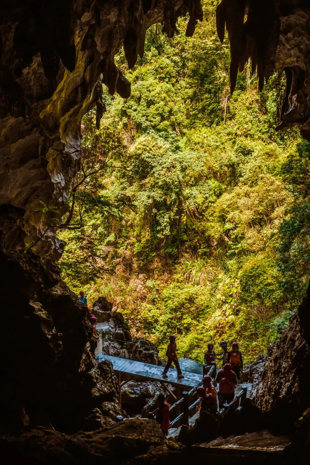 而黔南布依族苗族自治州(下称黔南州)的茂兰,则是中国南方喀斯特世界自然遗产的核心区域,森林覆盖率超91%,自驾穿梭其中,将肺腑都涤荡得通透轻盈。若是行走在安顺市黄果树瀑布下,飞溅的水雾携带草木清香扑面而来,高达每立方厘米4200个的负氧离子浓度,犹如一场自然的洗礼。上图:茂兰的天然溶洞吸引了一波探险家们。
