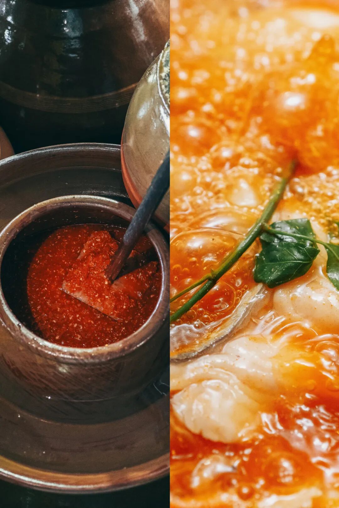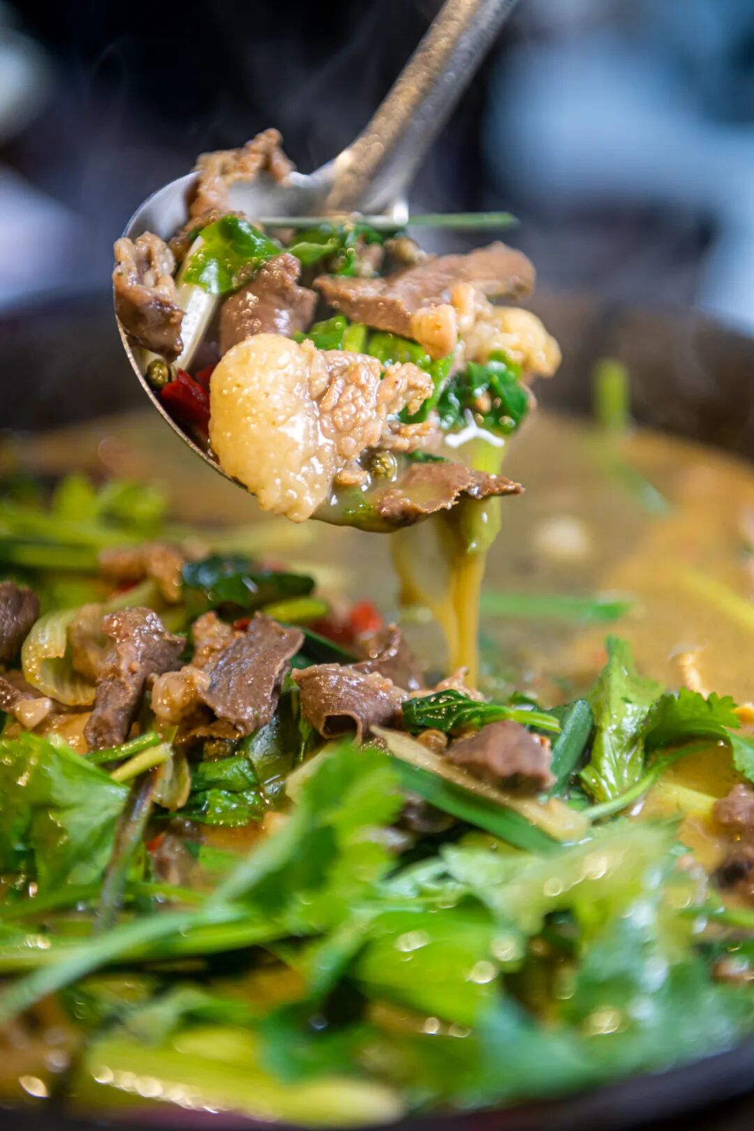 养胃盛宴:贵州以大地为滋养,以四时为节令,值此秋景,正是温补养胃的良机。贵州的秋味,奉上一席自然馈赠的盛宴——步入贵州的秋天,最先邂逅的是枝头金灿灿的刺梨果,这颗看起来毛刺刺的黄金果,裹挟阳光与山露,酿成“维C之王”。贵州人说“刺梨上市,太医无事”,果农的巧手将它制成蜜饯、酵素与鲜浆,浓缩了秋日的精华。与此同时,“山卡卡”里的猕猴桃也迎来最甜美的时刻,剥开薄薄的外皮,果肉莹润多汁,若是错过就要再等一年。一口酸酸甜甜,唤起沉睡的味蕾。金灿灿的刺梨丰收了,果农们以最快的速度将它们送上货架。贵州秋味的真正灵魂,还是在于发酵带来的深入灵魂的酸爽,“三天不吃酸,走路打蹿蹿”。米汤发酵的白酸汤、毛辣果(野生番茄)和辣椒发酵的红酸汤,加入独特香气的木姜子与各种山野菌菇,光是闻着就唤醒了脾胃。涮上一顿酸汤火锅,温热汤气熨帖身心,恰是寒秋最治愈的仪式感。这是贵州人应对气候与时令的智慧。除了发酵,贵州人还深谙传统的“药食同源”之道。采自黔山深处的天麻,与农家土鸡慢火共炖。汤色清亮却底蕴深厚,一碗下肚,暖意贯通四肢百骸。最终,所有的美味都回归于最本真的生态食材。山地梯田里,糯稻新收,街巷里用粽叶将糯米与红糖包成方块的黄粑俘获了游客们的心;兴仁的薏仁米饱满粉糯,好吃又滋润;小黄豆制成的豆花、豆腐圆子、爆浆豆腐,花样繁多……贵州山间遍布未经雕琢的天然食材。贵州的一粥一饭,都带上土地的温度;一菜一汤,尽是秋天的慷慨诚意。鸡肉汤圆、威宁火腿、青岩卤猪脚、包浆豆腐......大快朵颐。
