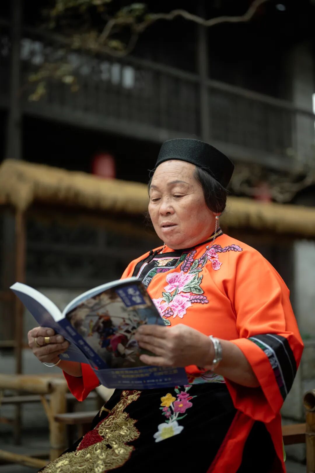屯堡嬢嬢翻阅《屯堡·家国六百年》。