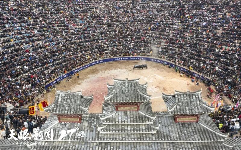 “贵州牛・超级牛”斗牛文化观演活动现场人头攒动。罗京来 摄