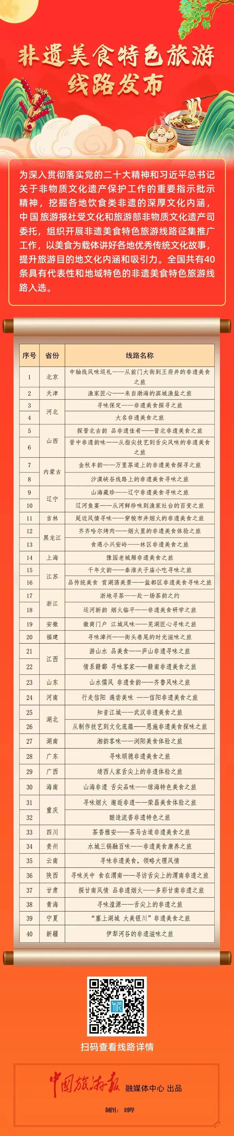 此次线路征集工作由文化和旅游部非物质文化遗产司委托中国旅游报社开展,自2025年8月启动以来共收到全国各地报送的非遗美食特色旅游线路170条。此次发布的40条线路如同一场跨越中国的味觉旅行推荐: