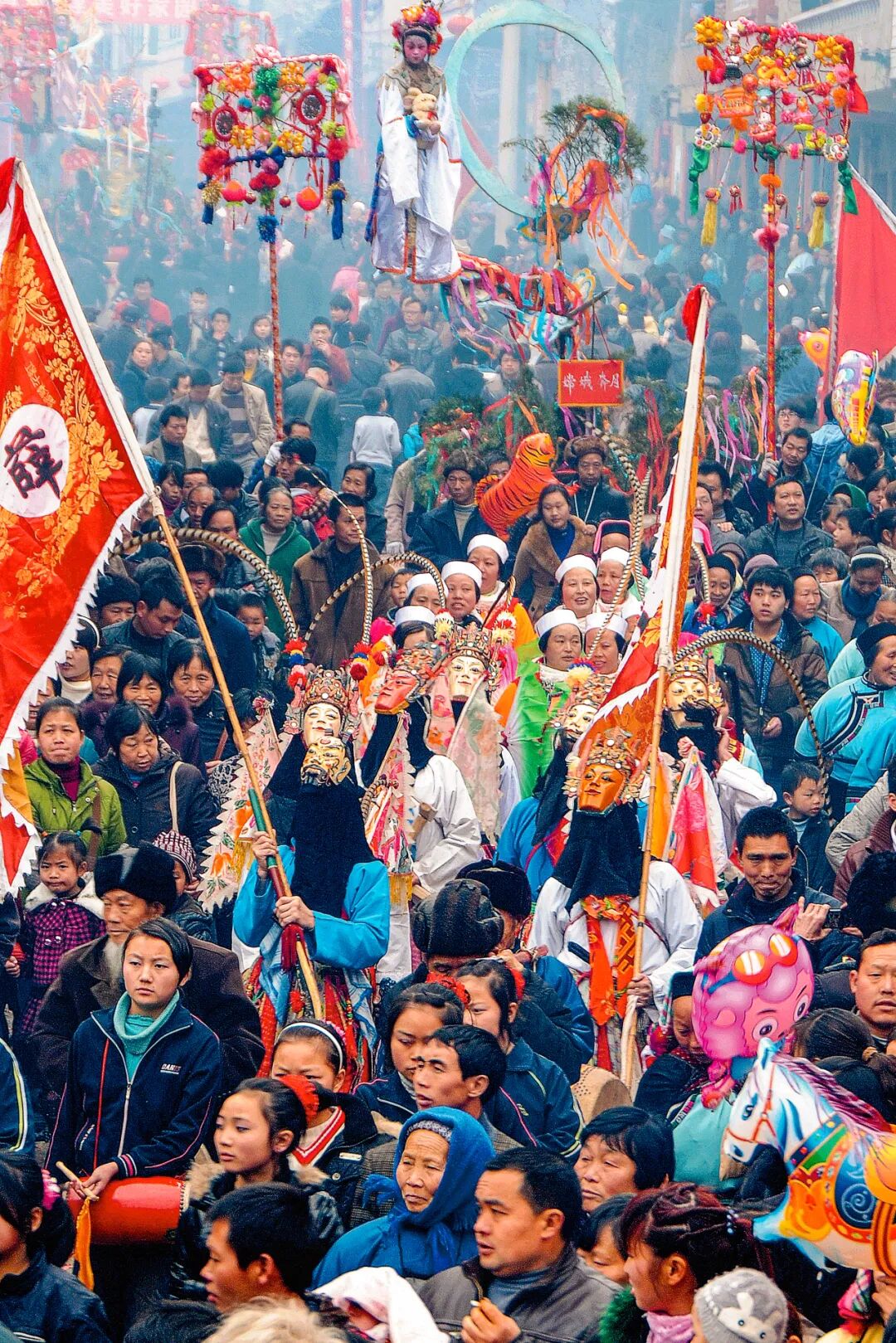 “抬汪公”活动规模极大,必须全村参与。男女老少按长幼尊卑排列,旌旗招展,鼓乐齐鸣,换上新衣的汪公塑像被从庙中请出,一家一家地巡游过去,每到一处,村民都会点起鞭炮迎接,不过几百米的路程,往往要走上三四个小时。这种对仪式感的极致追求,就像是中国文化中“国之大事,在戎在祀”的微缩版本。