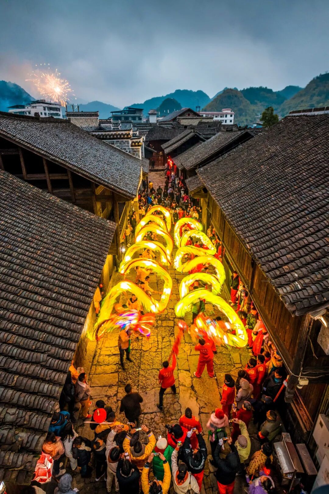 肇兴侗寨的春节,有鼓楼与烟花同框。