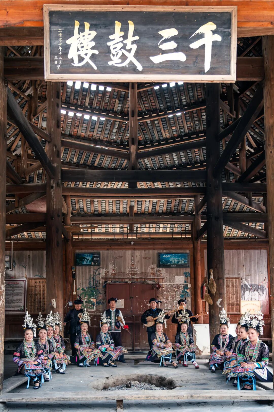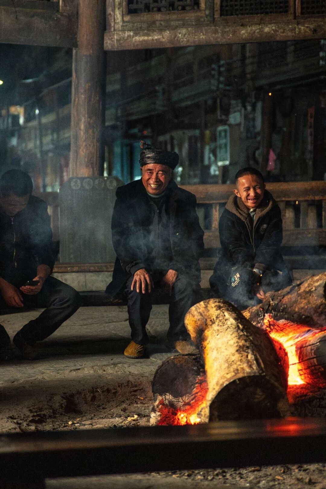 鼓楼本身就是全寨村民共同出资修建的。冬天的肇兴,鼓楼下的火塘终日不熄,几乎从早到晚都有人。有人烤火,有人聊天,有人商量村里的事情。春节临近,外出的人陆续回来,鼓楼下更热闹了。