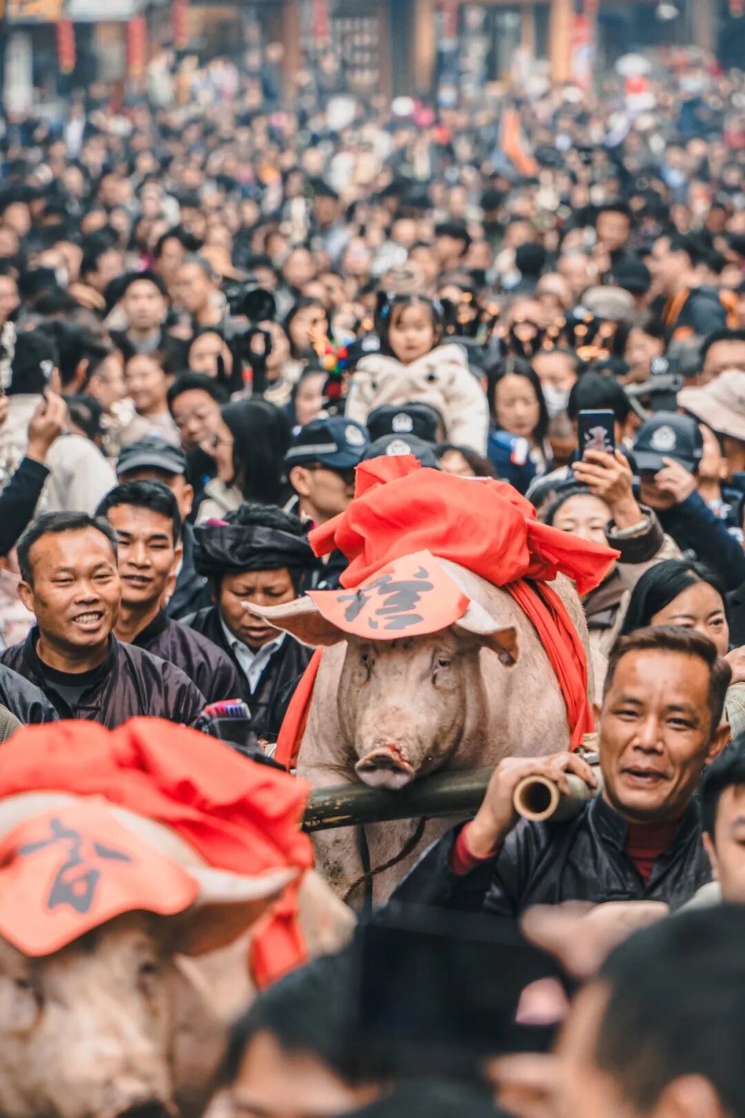 肇兴侗寨的村民过年期间抬年猪。