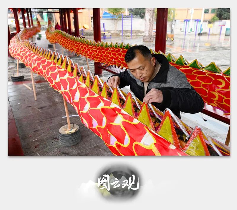 新龙制成,村民们还会举行庄重的“接龙”仪式。在临水之处,摆上香案,放上贡品,唱上一段祝词,用树叶沾上水分别洒向龙头、龙身、龙尾,称之为点睛、画鳞。祈求龙王匀播雨水,来年水源旺盛、风调雨顺。