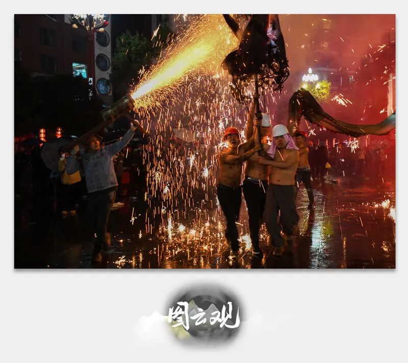 一旦龙进入城内、舞龙者高喊,嘘者手持花筒蜂拥而至,点燃自己手上的花筒,花筒发出“呼呼”的喷射声直指龙头、龙身,顿时,火光滔天,犹如波浪。