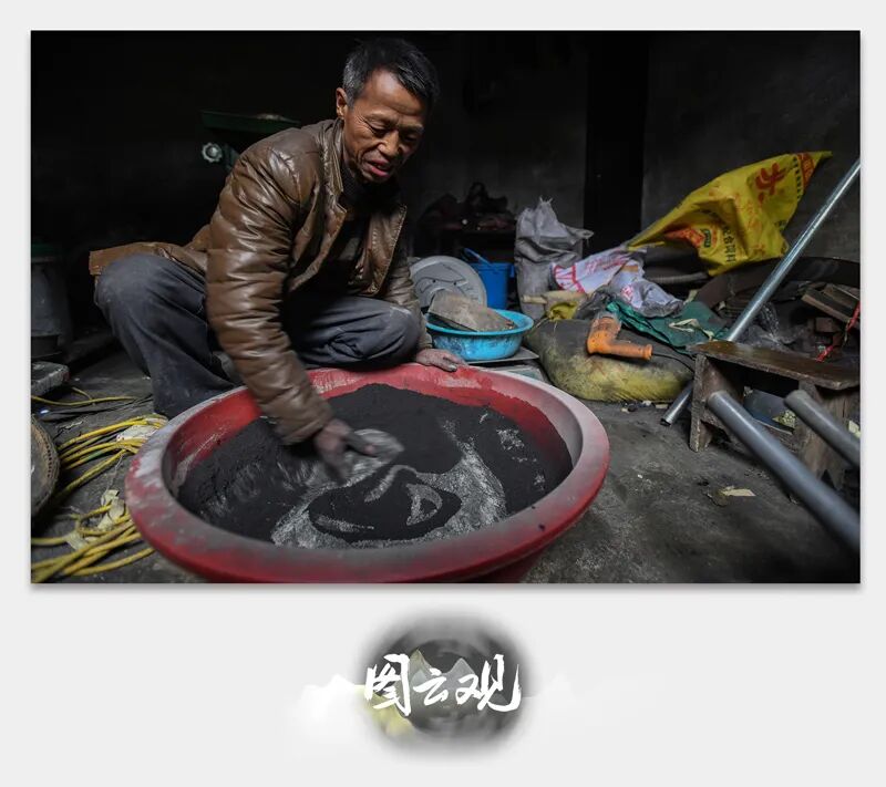 台拱街道一条狭窄巷道内,手艺人宋之礼徒手将芒硝、硫磺、炭屑、铁沙过筛,按标准配比,加酒精混合后装到竹筒里,再加放引线。通常小竹筒装载火药1斤左右,可喷射嘘花10多秒钟;最大的竹筒能装近20斤,喷射嘘花持续2分钟。嘘花筒不能久放,最多3天内就要使用。因此面向市场销售的嘘花筒,他常在大年十三后开始赶工。