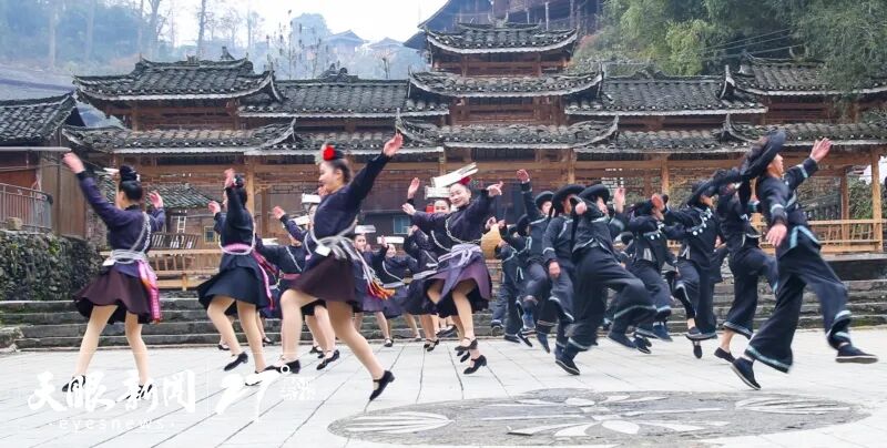 在节日中演出反排苗族木鼓舞。龙军 摄(贵州图片库发)