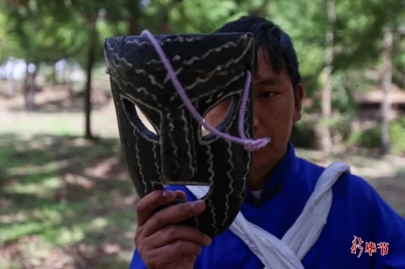 当文超将象征传承的面具戴在脸上,“远古直眼人,模样不像人,模样似野兽,长猴脸,生鼠牙,野果当饭吃,露水当水喝,树叶当衣穿,人类如此产,人类如此生。”曾经晦涩的古彝语在青年口中流畅地响起,接过爷爷手中的木杖,带领青年演员们又踏起舞步。