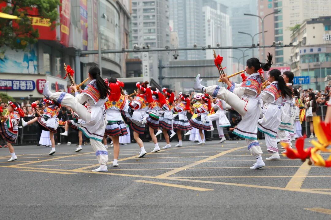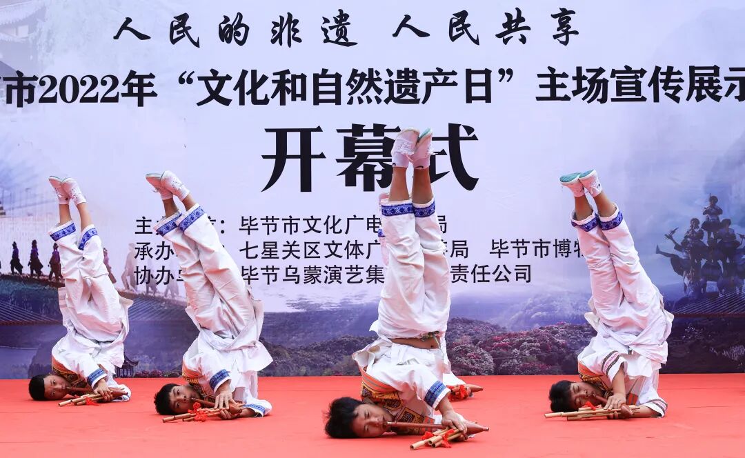 “滚山珠”演员在贵州民族团结大巡游中表演