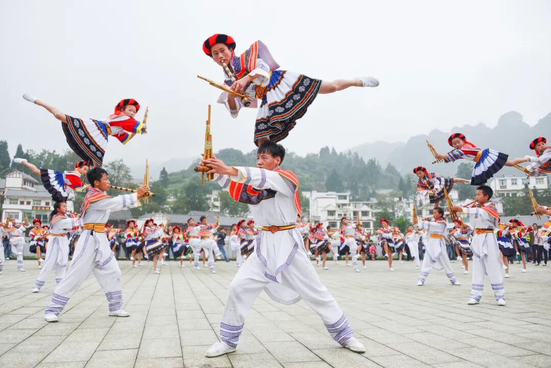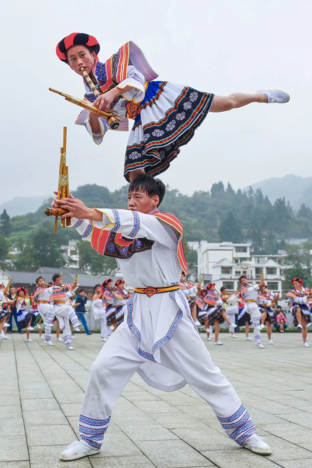 苗族芦笙舞“滚山珠”原名“地龙滚荆”,苗语音译叫“子落夺”,是苗族人民世代相传的芦笙舞蹈之一,集芦笙吹奏、舞蹈表演、杂技艺术为一体的民族舞蹈。