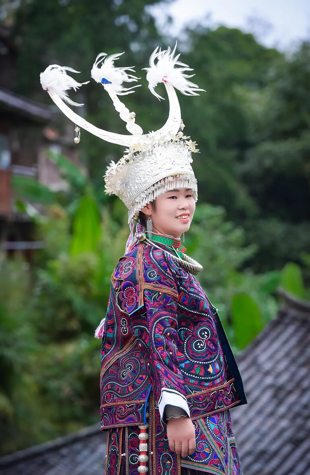 身穿百鸟衣的苗族姑娘翩翩起舞