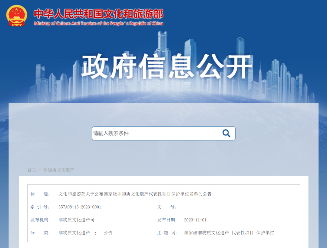 文化和旅游部关于公布国家级非物质文化遗产代表性项目保护单位名单的公告